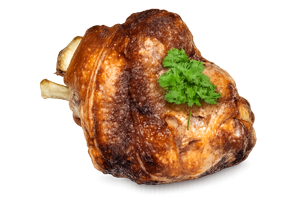 Ca. 2.400 Gramm. Ebenfalls von Hand gewürzt und knusprig zubereitet für besonderen Genuss.