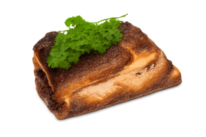 Aus bäuerlichen Betrieben im Rottal. Von Hand mit Spezialmischung (ohne Geschmacksverstärker) gewürzt und knusprig zubereitet.